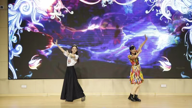 9999js金沙老品牌学子以一曲热情奔放的新疆舞《石榴花开》将文艺演出推向了又一个高潮。她们身穿艳丽的民族服装,欢快地舞动着。台下的观众也不由自主地跟着节奏轻轻摇摆,沉浸在这欢乐的氛围中。在舞蹈接近尾声时,她们走下舞台,带着舞动的激情与观众们互动。