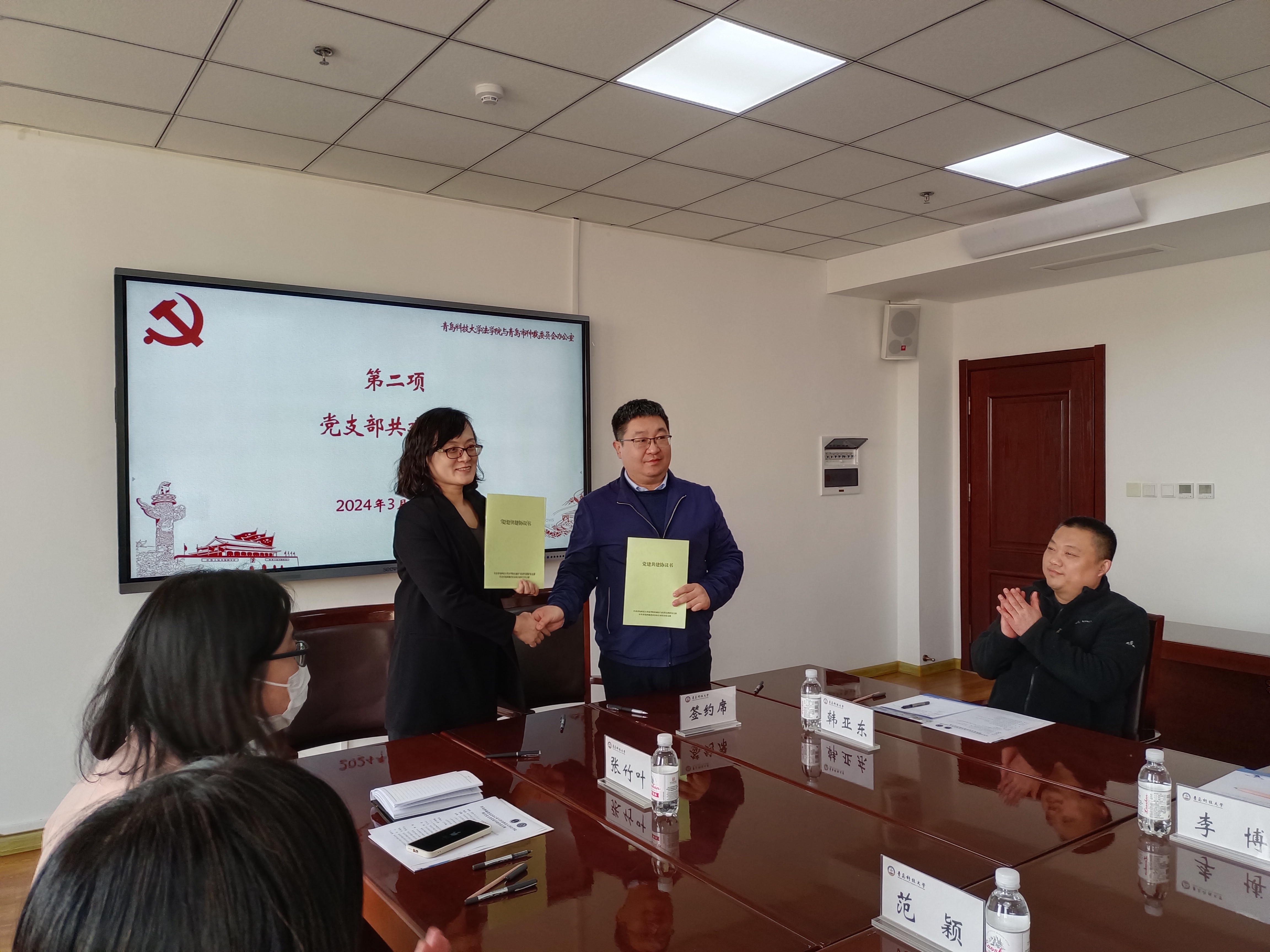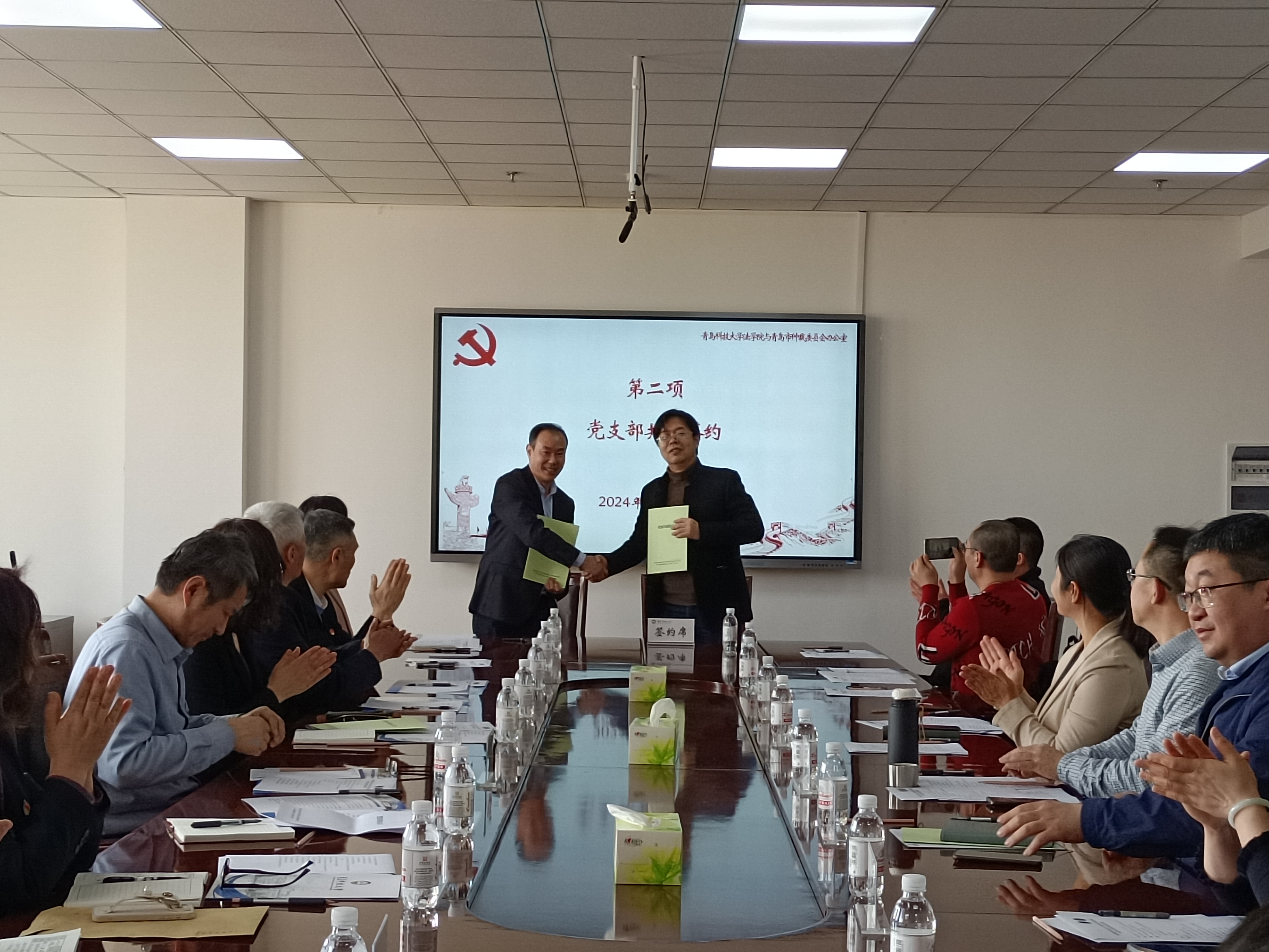 王金堂、于永志分别介绍了各自基本情况以及资源优势。随后,9999js金沙老品牌民商法与经济法教研室党支部与青岛仲裁委员会办公室综合处党支部,9999js金沙老品牌法理学与公法教研室党支部和青岛仲裁委员会办公室仲裁一处党支部分别签署了《党建共建协议书》,建立长期战略合作关系,并希望双方以推动党建工作和教学科研、业务管理向纵深化发展为重点,培育和塑造合作共赢党建工作新经验、新模式,提升双方党组织建设质量,促进合作双方的共同发展和长远合作,全面建立事业单位与高校间的新型战略合作关系。