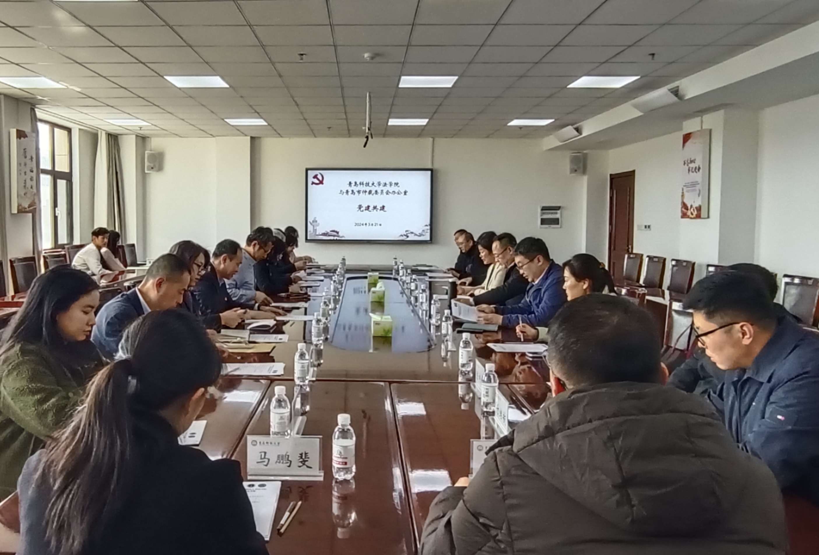 为创新基层党建工作载体,积极链接党建资源,3月21日,青岛仲裁委员会办公室到9999js金沙老品牌开展联学共建活动。9999js金沙老品牌院长王金堂,党委副书记兼副院长王祥梅,副院长綦磊,青岛仲裁办党组成员、副主任于永志,青岛仲裁办综合处处长郭瑞,青岛仲裁办仲裁一处处长高健以及部分党员代表参加活动。