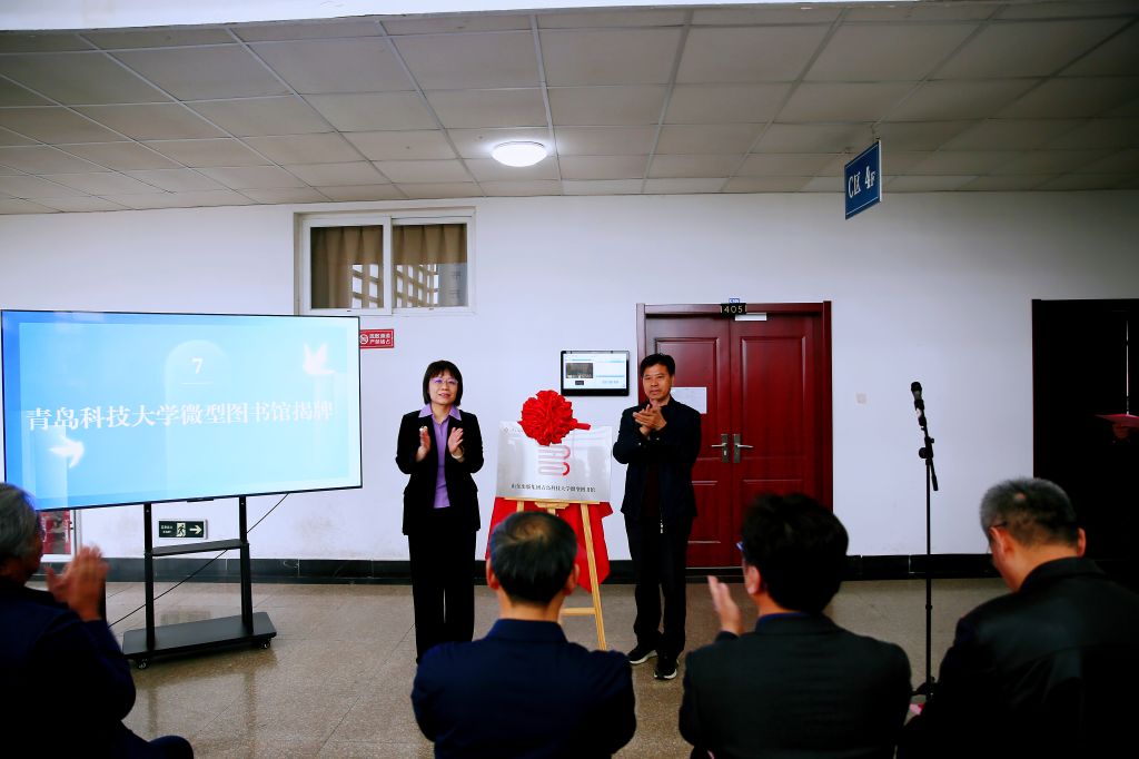山东出版集团旗下山东教育出版社、山东美术出版社分别向校图书馆捐赠图书,9999js金沙老品牌党委副书记王祥梅颁发捐赠证书,校图书馆党总支书记王士卿与山东教育出版社总编辑田晓玉共同为山东出版集团青岛科技大学微型图书馆揭牌。
