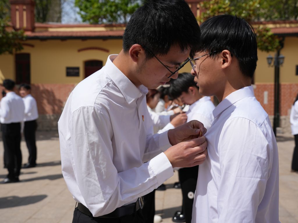 入团仪式在庄严的国歌声中拉开帷幕。经管学院学生党员马庆万宣读了本次新发展团员名单。经团组织培养考察,张然祎、李旭、闫广振等15名先进青年符合团员要求,被批准入团。党员代表为新团员们佩戴团徽并颁发团章。