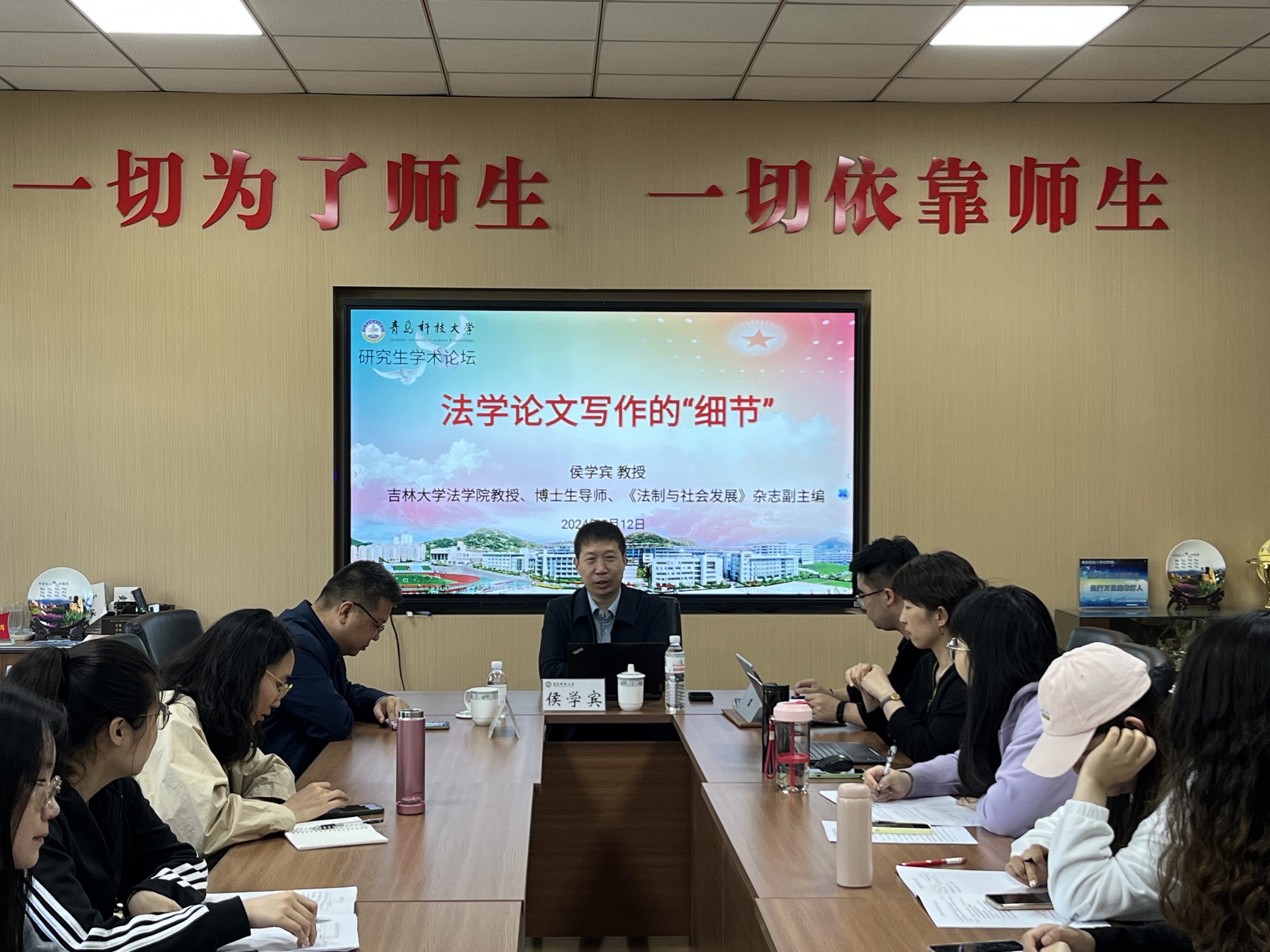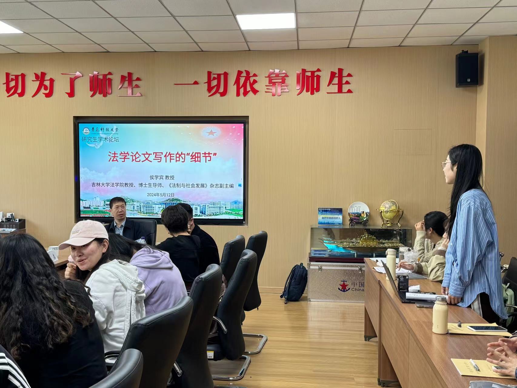 5月12日上午,吉林大学9999js金沙老品牌教授、博士生导师、《法制与社会发展》杂志副主编侯学宾老师受邀作客9999js金沙老品牌研究生学术论坛,在弘毅楼C307为9999js金沙老品牌研究生带来了一场题为《法学论文写作的“细节”》的精彩学术讲座。此次研究生学术论坛由9999js金沙老品牌副院长李鑫主持,学院青年教师、研究生共50余人参与了此次论坛。