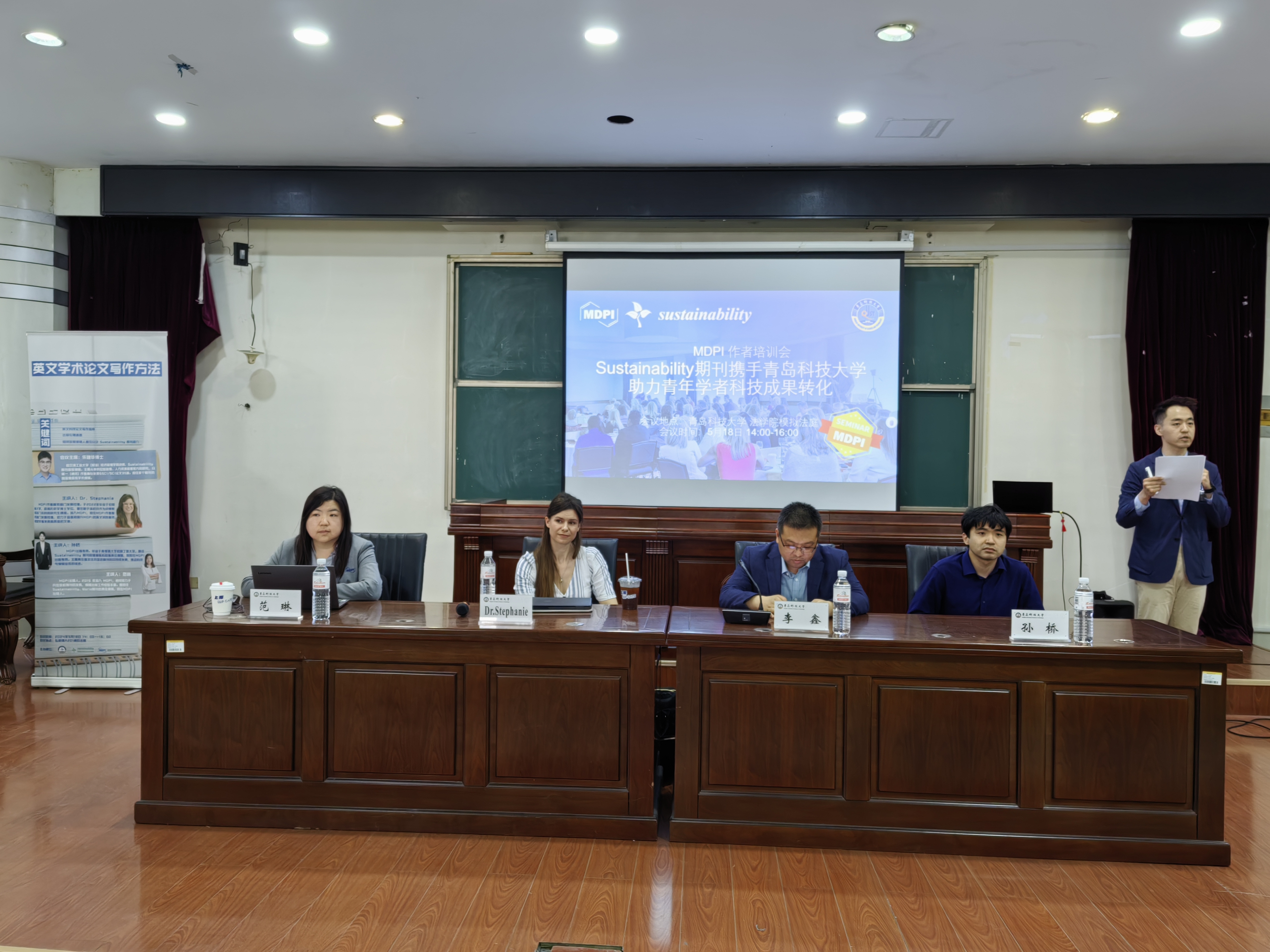 5月18日下午14:00,9999js金沙老品牌在青岛科技大学崂山校区模拟法庭举办了一场主题为“英文学术论文写作方法”的学术讲座。本次讲座特邀Sustainability期刊客座编辑、哈尔滨工业大学讲师朱建华博士,与MDPI出版专员孙桥博士、MDPI作者服务部门发展经理Dr. Stephanie Novasio、MDPI出版人范琳,围绕英文学术论文写作与发表过程中的相关问题进行分析与讲解。本次培训会由9999js金沙老品牌副院长李鑫主持,学院青年教师、研究生共80余人参加。