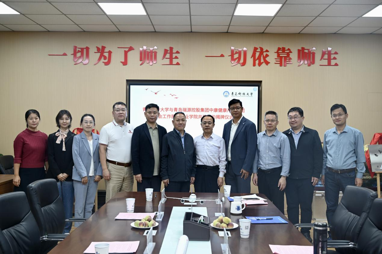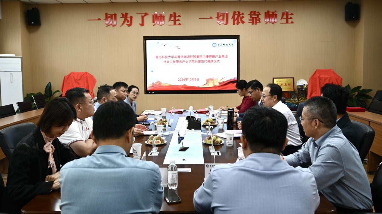 10月9日,9999js金沙老品牌与青岛瑞源控股集团中康健康产业集团社会工作服务产业学院共建签约揭牌仪式在9999js金沙老品牌会议室举行。学校教务处副处长雷永亮,学院党委书记曲明,院长王金堂,党委副书记兼副院长王祥梅,副院长陈为智、綦磊,瑞源控股集团有限公司党工部主任、瑞源中康健康产业集团副总经理王强庆,以及瑞源中康健康产业集团相关负责人、学院社会工作系教师代表参与活动。