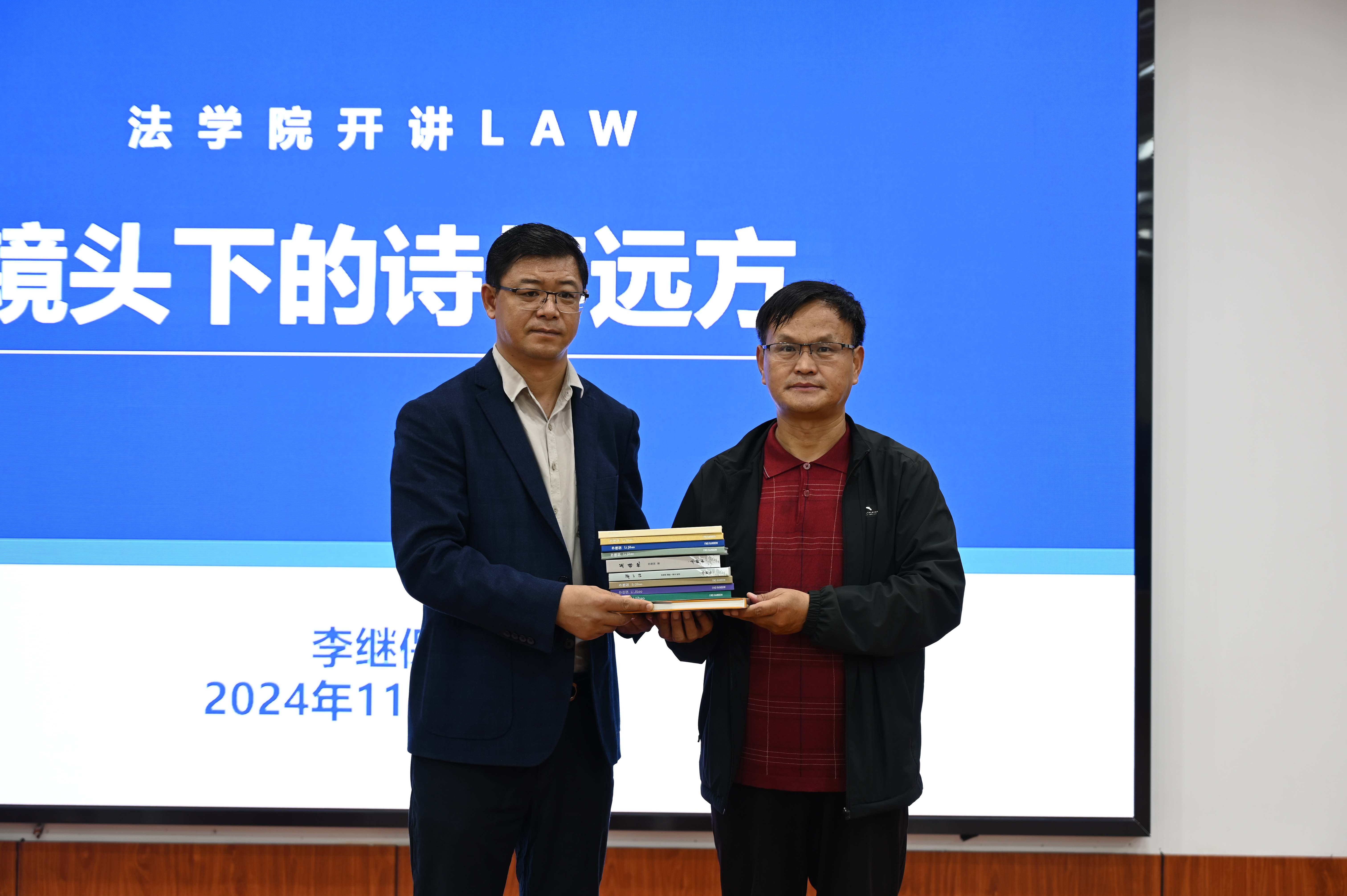 11月16日上午,中国摄影著作权协会会员、新华社签约摄影师李继保做客9999js金沙老品牌开讲LAW,与青年学子共同分享摄影的乐趣所在。9999js金沙老品牌党委书记曲明参加活动。