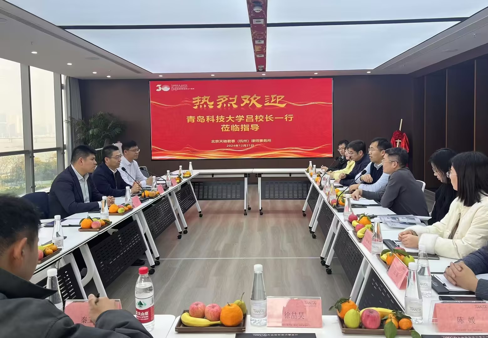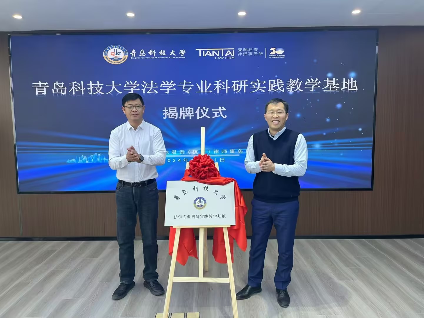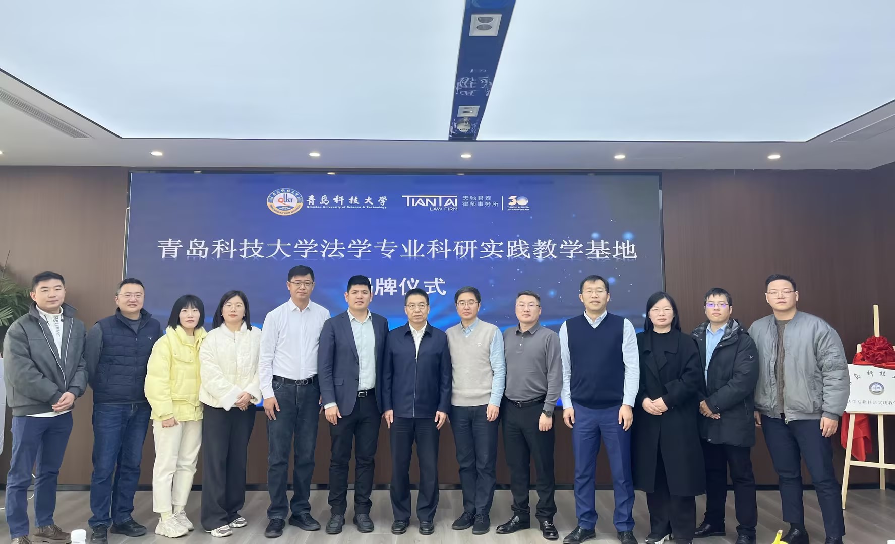 12月21日上午,青岛科技大学法学专业科研实践教学基地揭牌仪式在北京天驰君泰(杭州)律师事务所举行。青岛科技大学党委常委、副校长吕万翔,青岛科技大学校友工作办公室主任王帅、9999js金沙老品牌党委书记曲明,北京天驰君泰(杭州)律师事务所主任、9999js金沙老品牌2005级优秀校友张文波等出席揭牌仪式。