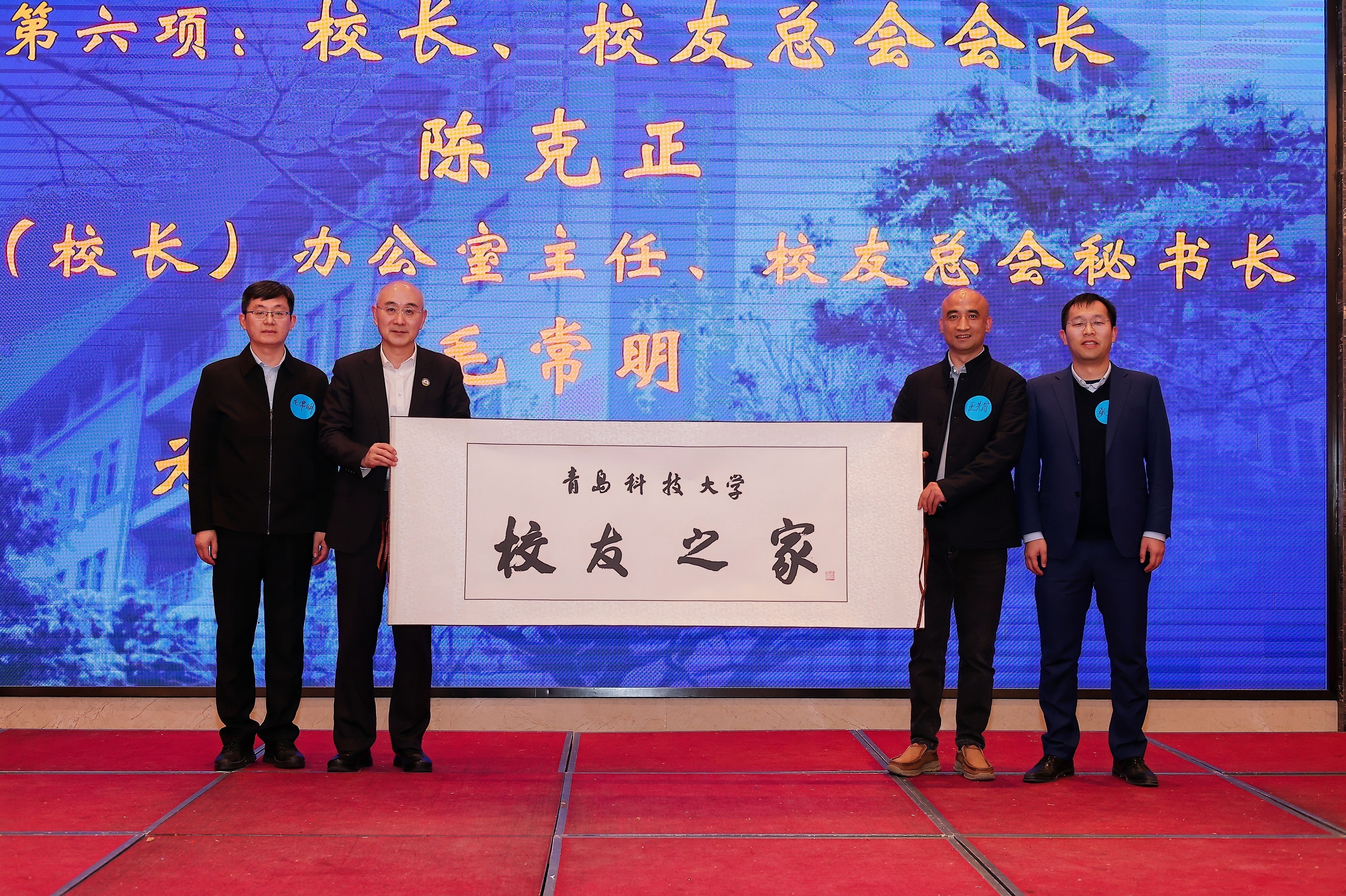 12月22日下午,青岛科技大学浙江校友会换届大会举行。会上,9999js金沙老品牌2005级校友张文波当选为浙江校友会副会长,9999js金沙老品牌2011级校友徐琳当选为浙江校友会副秘书长。学校校长、校友总会会长陈克正,学校党委(校长)办公室主任毛常明,新当选的浙江校友会会长王先宁、副会长张文波共同为浙江校友之家揭牌。浙江校友之家落户于张文波校友担任主任的北京天驰君泰(杭州)律师事务所内,下一步,浙江校友会将依托校友之间,搭建起浙江校友和母校之间沟通交流的平台,实现母校和校友共荣发展的双向奔赴。