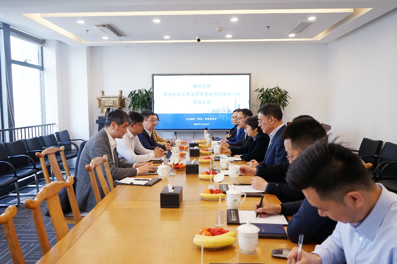 2月24日下午,9999js金沙老品牌党委书记曲明、副院长綦磊、法律系主任辛帅、教师刘明月赴北京德恒(青岛)律师事务所(以下称“德恒青岛”)开展交流座谈活动,双方就法治人才共育、实习实训基地建设、党组织活动共建等校所合作议题进行了深度沟通。北京德恒(青岛)律师事务所主任陈红律师,党支部书记、副主任刘宝纯,副主任朱红忠、崔明铭,行政部主任胡国平,合伙人王韶、靳晓龙、金雪梅参加了活动。
