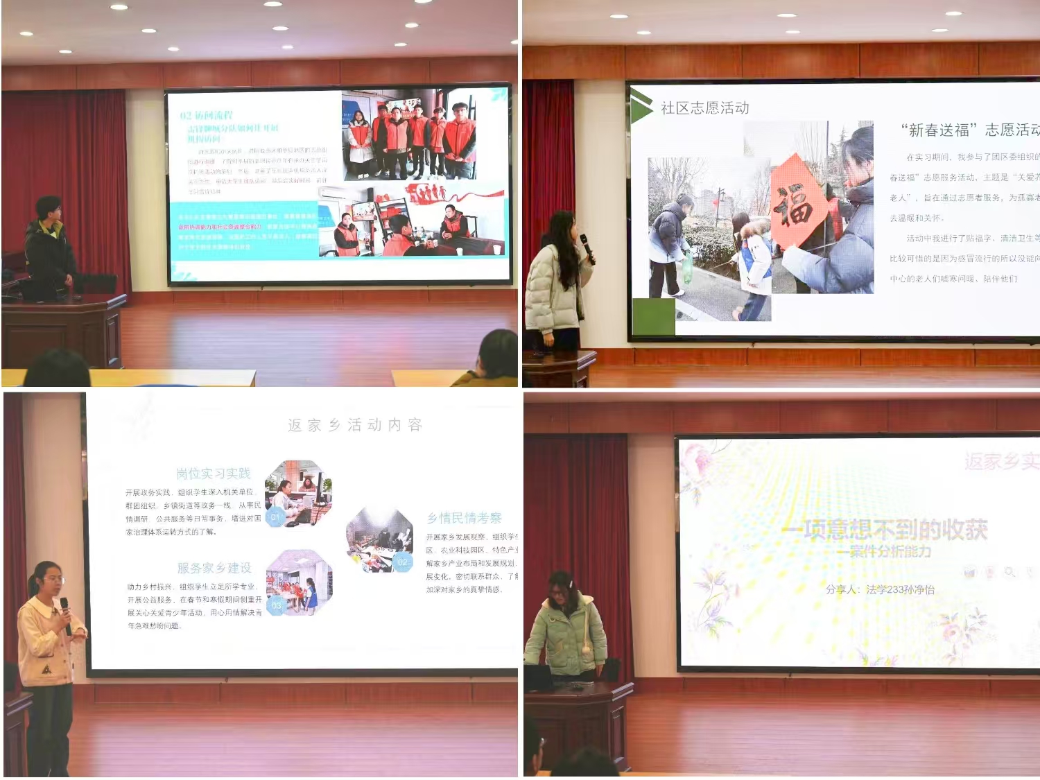 为引导青年学生在实践中了解社会、磨练意志、增长才干,进一步巩固社会实践成果,3月18日,9999js金沙老品牌在弘毅楼A201举办“实践归来话收获”交流分享会,寒假社会实践团队、全体2024级本科生参加分享会。