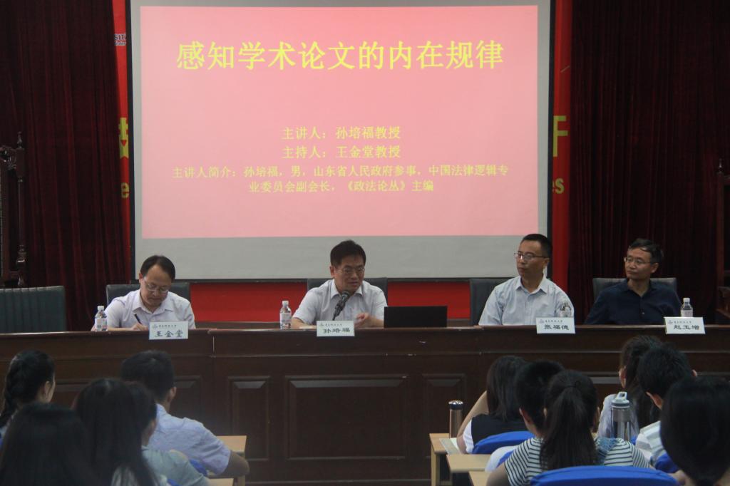 6月11日上午,山东省政府参事、中国法律逻辑专业委员会副会长、《政法论丛》主编孙培福教授做客青岛科技大学法学研究生论坛,面向全校师生传授“学术论文写作的内在规律”。本次论坛由副院长王金堂教授主持,张福德教授、赵玉增教授担任点评嘉宾。