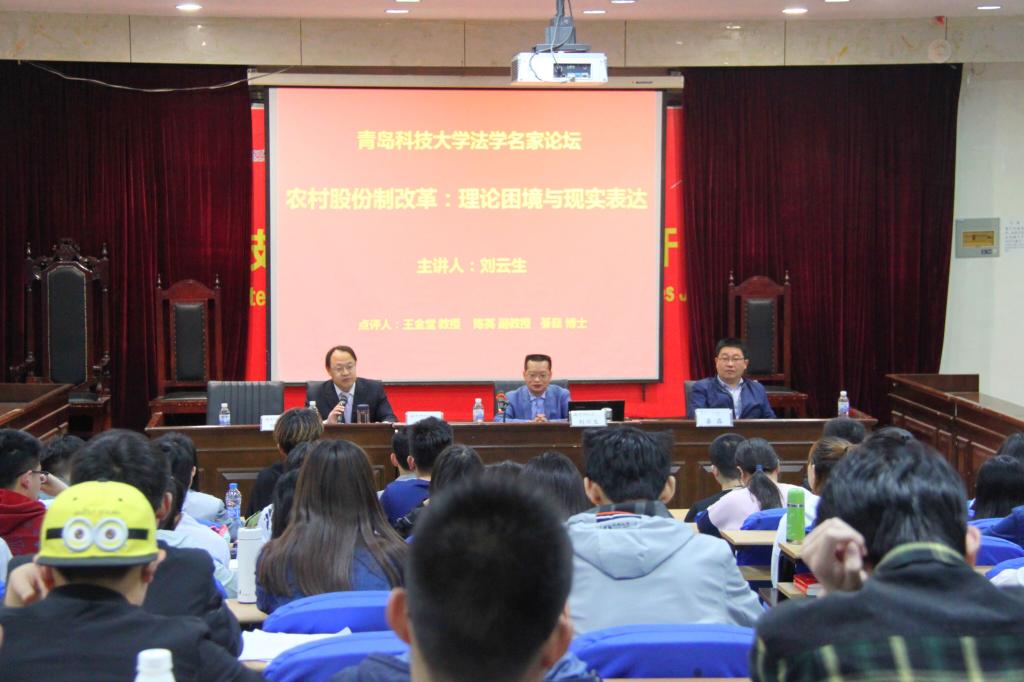 5月6日上午,民法学界著名学者、中央电视台《法律讲堂》主讲人刘云生教授做客青岛科技大学法学名家论坛,面向全校师生就“集体土地股份制改革:理论困境与现实表达”做了一场精彩的学术讲座。副院长王金堂教授主持讲座。