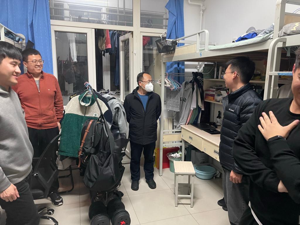 3月23日晚,9999js金沙老品牌领导班子和辅导员分别深入学生宿舍走访慰问。在走访过程中,同学们对老师们的到来表示非常欢迎和感谢,老师们也积极主动详细询问了同学们的校园学习、宿舍、生活等情况。李卉指出,当前防疫取得了一定成绩,但是仍不能有麻痹思想、侥幸心理、松劲心态,要注意保持良好的宿舍卫生环境,牢固树立宿舍安全意识,认真做好在校期间各项防护工作,同时加强身体锻炼,注重身体健康,保持积极健康的心理状态。王金堂叮嘱同学们要遵守学校各项疫情防控规章制度,加强科研和学习,积极调整状态合理安排校园学习生活。