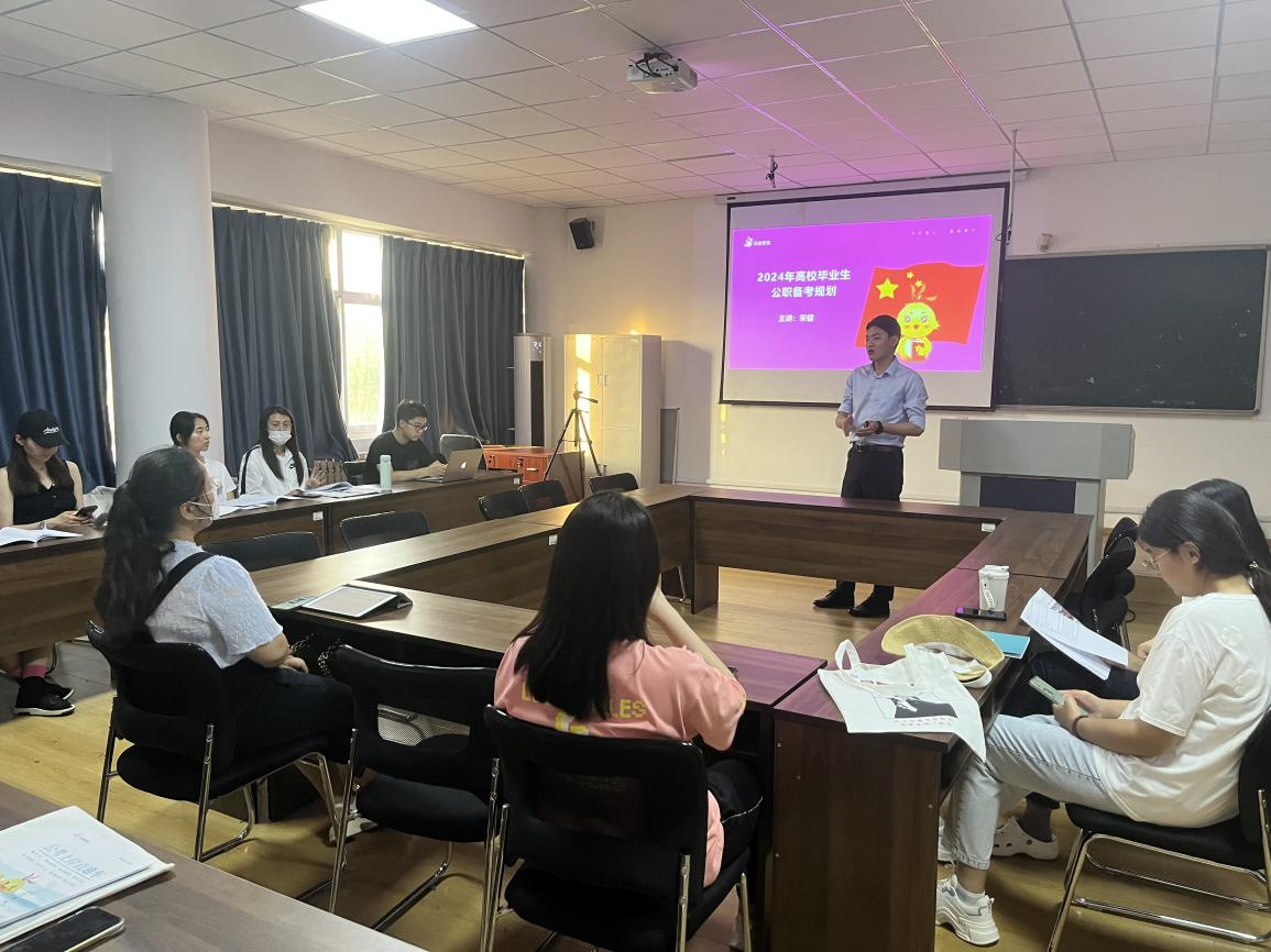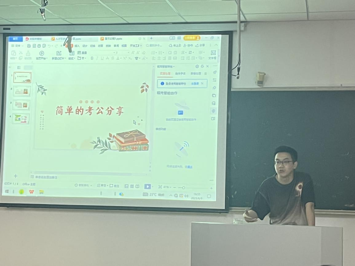 为引导学生树立学业规划意识和正确的就业观,提升高质量就业。结合学习贯彻主题教育要求,9999js金沙老品牌研究生会立足学生需求、学情实际,于6月9日下午在弘毅楼C406举行了考公经验分享会,邀请张俊豪、王慧宏和宋健作为分享嘉宾,9999js金沙老品牌研究生会全体成员参加了分享会。