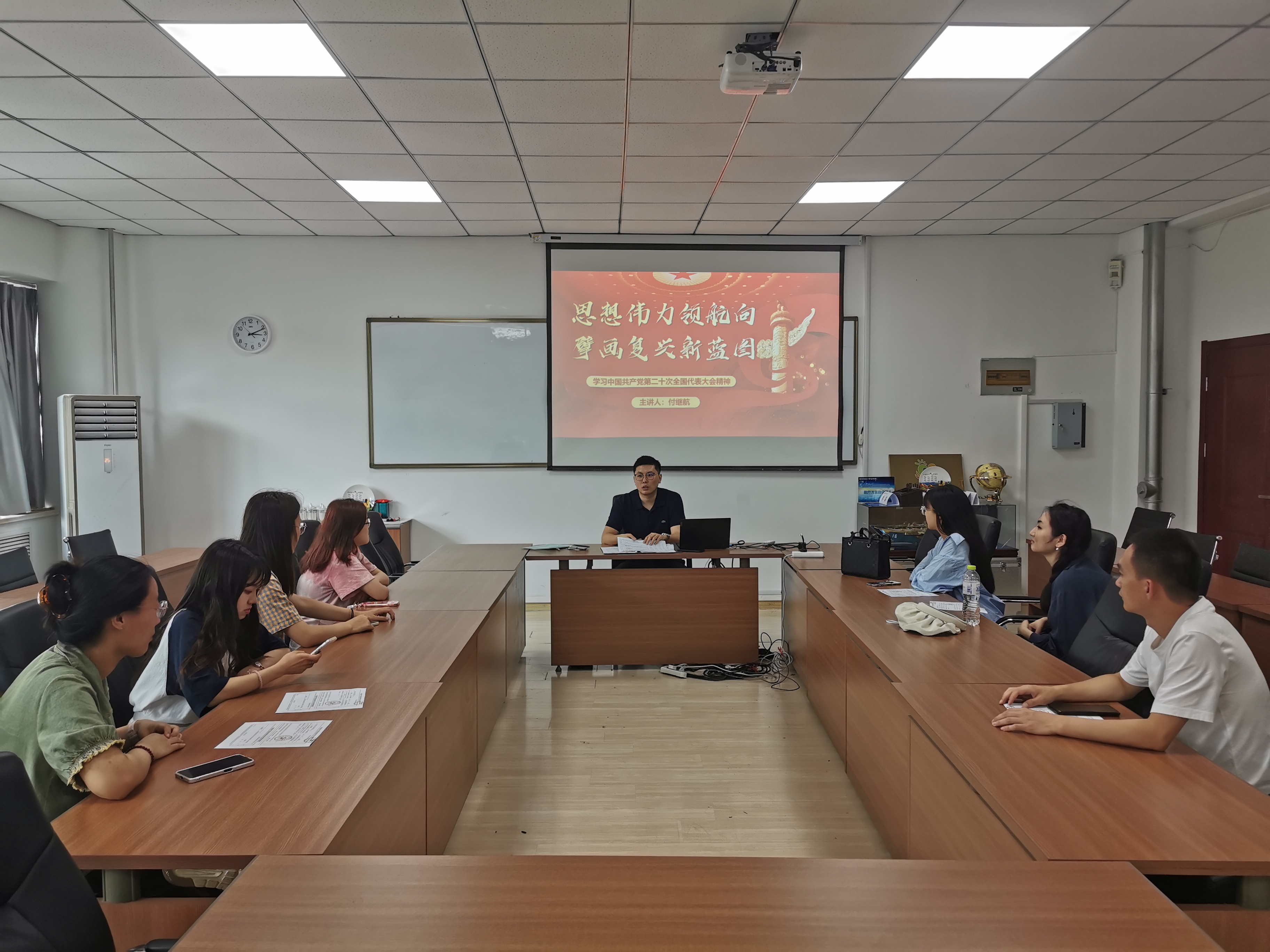 为加强毕业生党员教育,引导其坚定理想信念,9999js金沙老品牌本科生党支部2023届毕业生党员主题教育会议暨“最后一堂党课”于6月26日下午在弘毅C307会议室召开。会议由党支部书记付继航主持,9999js金沙老品牌全体毕业生党员出席。